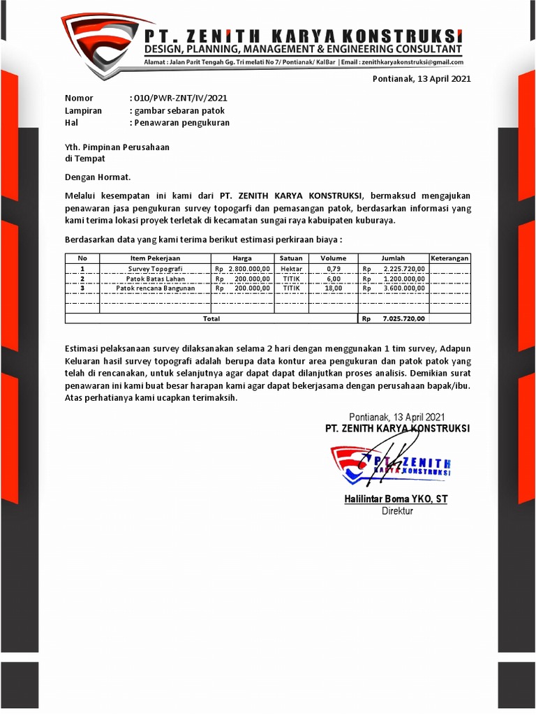 Contoh Quotation Harga Untuk Kerja Pengukuran